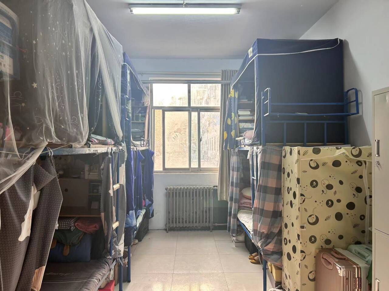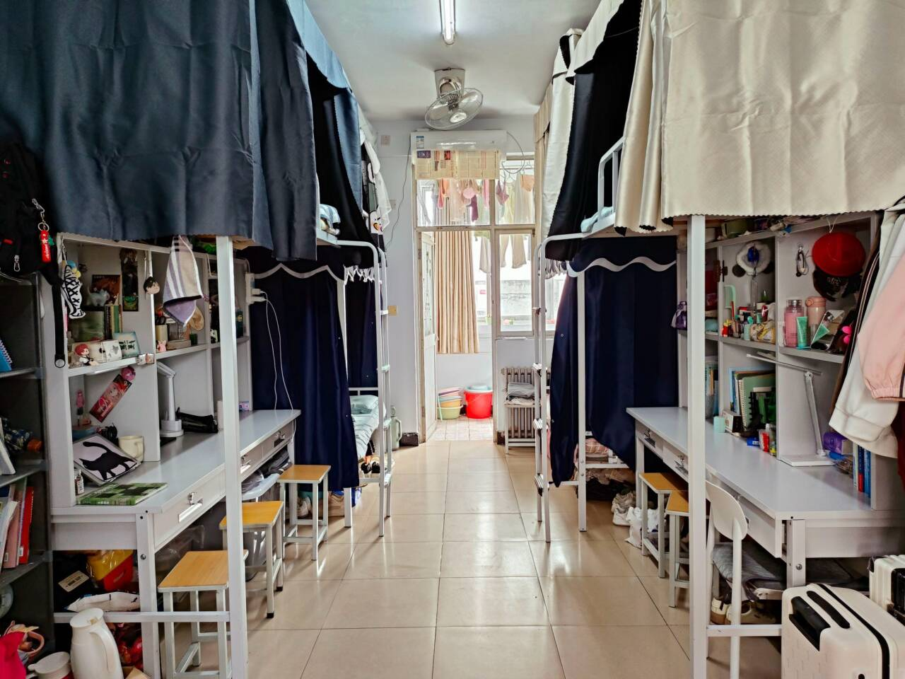 【宿舍介绍】“宿舍友谊长存,生活和谐简朴”。美好的一天从早八开始,打开灯光,拉开窗帘,迎接今天的第一缕阳光。1414寝室忙碌的一天就这样简单的开始了,刷牙、洗脸、化妆这是我们这群小女生们必不可少的步骤。有着不同性格的我们,却摩擦出不同的火花!宿舍在大家的相处与陪伴中显得温馨,富有烟火气。看剧、打闹在欢声笑语中我们陪伴着彼此。一个干净整洁、空气清新的宿舍,不仅为我们提供舒适温馨的居住环境,也成为陶冶情操宁静和谐的学习环境。在没有课的下午,大家不约而同地听听力,背单词,做阅读,在充满文化气息宿舍里,我们共同打造一个更干净的环境。