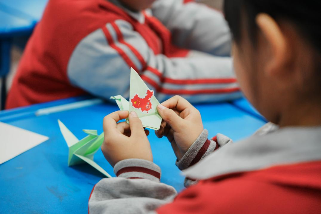 “红色情景手工坊”核心大学生志愿者手把手教小学生折纸和平鸽,从折叠翅膀到粘贴“中国地图贴纸”,每一步都融入思政意涵:“折紧翅膀,就像我们守护家园;贴上地图,要记得我们的根在哪里。”这一刻,折纸不再是简单手工,而是大中小学共同践行“爱国行动”的生动实践,实现思政教育“知”与“行”的统一。
