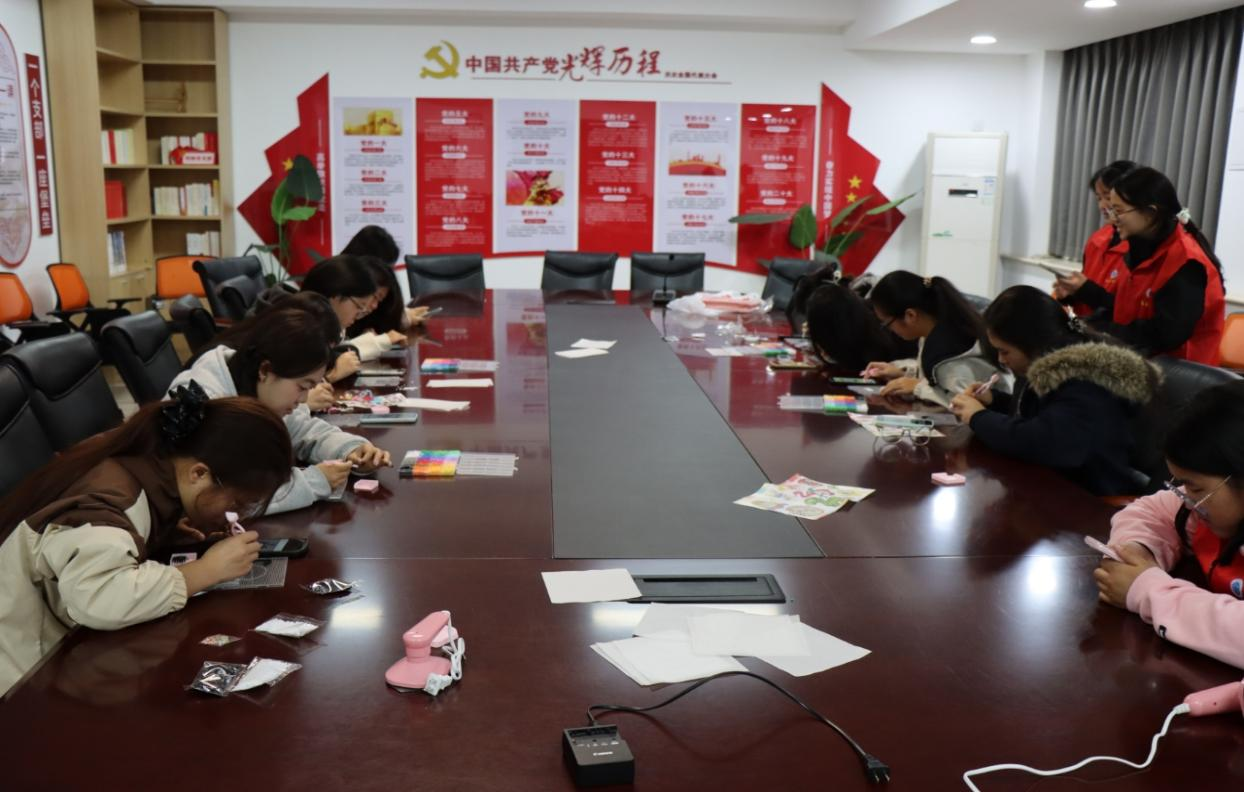 扭转心意,棒聚同心”环节里,20余名同学围坐一堂,手持色彩鲜艳的扭扭棒,在工作人员的简单指导下,弯折、缠绕、拼接,将普通的扭扭棒变成一朵朵形态各异的纪念鲜花——有的搭配不同颜色扭扭棒做成多层花瓣,有的注重花朵自然结构,花蕊、花瓣、花茎和绿叶一个不落,枝枝朵朵无不让人喜爱。此外,同学们大开脑洞施展身手,小星星、指环宠、中国结等活灵活现。大家边做边聊,分享参与活动的喜悦,让手工时光充满温情。