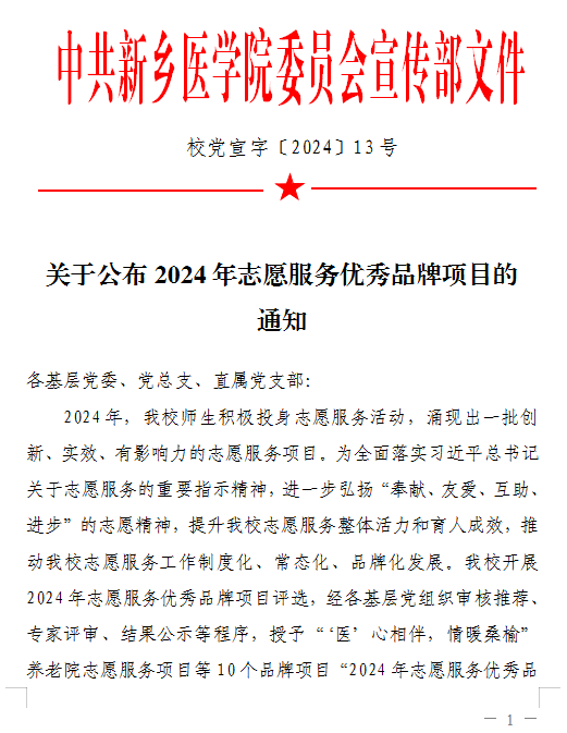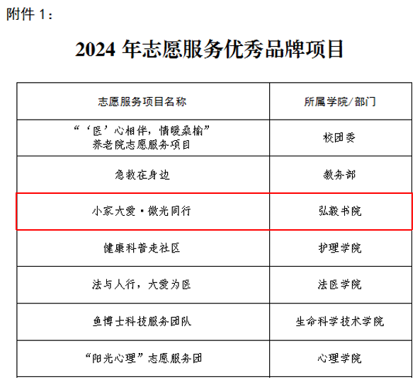 为全面落实习近平总书记关于志愿服务的重要指示精神,进一步弘扬“奉献、友爱、互助、进步”的志愿精神,提升志愿服务整体活力和育人成效,推动我校志愿服务工作制度化、常态化、品牌化发展。经各基层党组织审核推荐、专家评审、结果公示等程序,我院“小家大爱•微光同行”荣获“2024年志愿服务优秀品牌培育项目”称号。