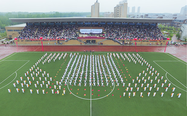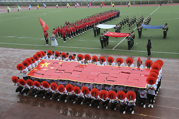 开幕式后,团体操表演随即开始。无论是伞化红船的告白祖国,还是宛如层层波浪的“旗子舞”,亦或是彰显生命力的心电图演示。各团体操代表队的队员们行云流水的动作,别具匠心的图案,整齐精彩的布阵,不断引来现场师生的喝彩和欢呼,充分展现了全校师生蓬勃向上的朝气和活力,表达了学子们对伟大祖国的热爱之情。