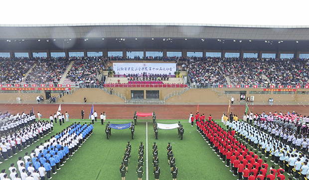 伴随着激昂的《运动员进行曲》,国旗队、彩旗队、裁判员队、各书院以及教职工代表队迈着矫健激昂的步伐,喊着整齐响亮的口号依次入场。在庄严肃穆的国歌中,全体肃立,奏唱国歌,运动会正式拉开了序幕。