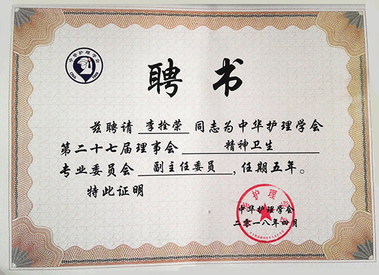 本届理事会共成立32个分支机构,覆盖面广。其中精神卫生专业委员会核心组成员共14人,包括顾问、主委、副主委、秘书及青委组长、副组长。李拴荣成为中原地区精神卫生专业唯一的1名副主委,充分彰显了我校第二附属医院护理工作在全国精神卫生专业的地位和实力。