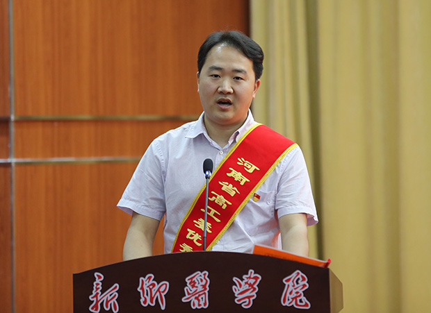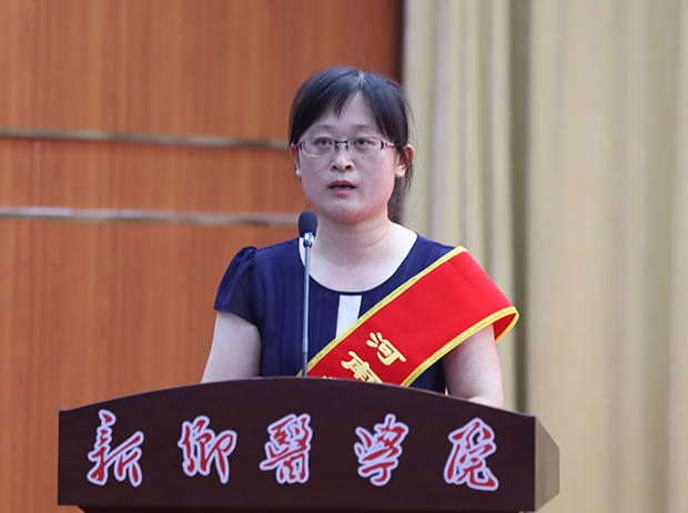 新党员代表、生命科学技术学院2016级生物工程专业学生张航,受表彰的优秀共产党员代表、第一附属医院妇产科主治医师王玉红同志,受表彰的优秀党务工作者代表、基础医学院生理学与神经生物学教研室党支部书记李超堃同志,受表彰的扶贫工作先进个人代表、我校驻延津石婆固乡胡村原省派“第一书记”、护理学院党委副书记李继煜同志在会上结合学习和工作实践、个人成长经历和感悟等进行了典型发言。