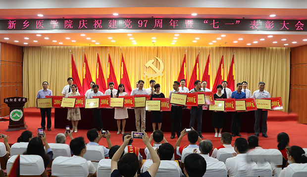 校纪委书记张现周宣读了中共河南省委高校工委、河南省教育厅党组《关于表彰省管高校优秀共产党员、优秀党务工作者和先进基层党组织的决定》、中共华亿在线手机版(大中国区)委员会《关于表彰先进基层党组织、优秀共产党员、优秀党务工作者、扶贫工作先进单位和扶贫工作先进个人的决定》。在欢快的乐曲中,与会的校领导分别为获奖单位和个人颁奖。