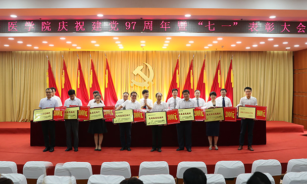 此次表彰大会的主题是,为喜迎我校第三次党代会、庆祝中国共产党成立97周年,表彰一年来在学校建设和发展中涌现出来的先进基层党组织和基层党建评估先进基层党组织、优秀共产党员、优秀党务工作者、扶贫工作先进单位和先进个人、维稳工作先进个人、网络文化建设先进单位等先进典型模范,鼓励基层党组织和全体党员争当先锋、争做模范,鼓励单位和个人积极参与和支持脱贫攻坚工作,进一步提升基层党组织的组织力,努力开创新时代学校建设发展新局面。