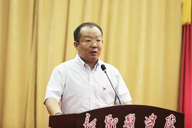 陈清江在主持讲话中要求各级党组织和全体党员要认真抓好会议精神的贯彻落实,将学懂弄通后的科学理论落实到甘于奉献、敢于担当、开拓创新、锐意进取的实践中来;要按照党委书记陈建国的讲话要求,认真贯彻落实习近平新时代中国特色社会主义思想和党的十九大精神,牢固树立“四个意识”,坚定“四个自信”,坚定共产党员理想信念,着力提升党组织组织力,争做六种先锋模范,加强党风廉政建设,永葆党的先进性和纯洁性,为早日建成高水平教学研究型医科大学做出新的贡献。