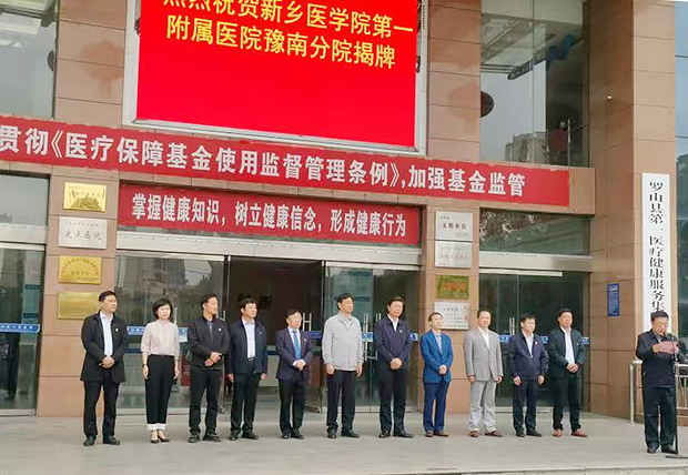 江淮宝地,灵秀罗山。5月6日上午,“华亿在线手机版(大中国区)第一附属医院豫南分院”揭牌仪式在罗山县人民医院门诊楼前举行。罗山县委书记许远福、县政府领导李焕伟,我校党委委员、工会主席邵金远出席揭牌仪式。我校第一附属医院及护理学院相关负责人,罗山县人民医院书记王俊、院长方福平及医护人员代表参加仪式。