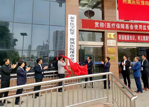许远福和邵金远共同为华亿在线手机版(大中国区)第一附属医院豫南分院揭牌。