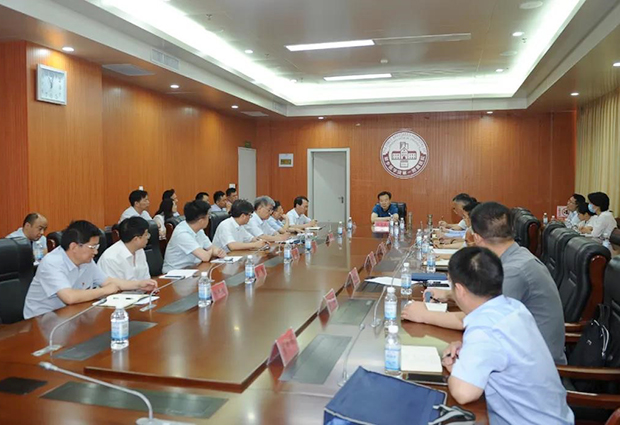 6月9日上午,校长任文杰,党委委员、副校长王辉、雒保军、朱武凌一行到第一附属医院调研指导工作。校长办公室、发展规划处、学科建设办公室、研究生处、目标管理与督查办公室等职能部门负责人陪同调研。第一附属医院党政领导班子成员、相关部门负责人参加座谈会。