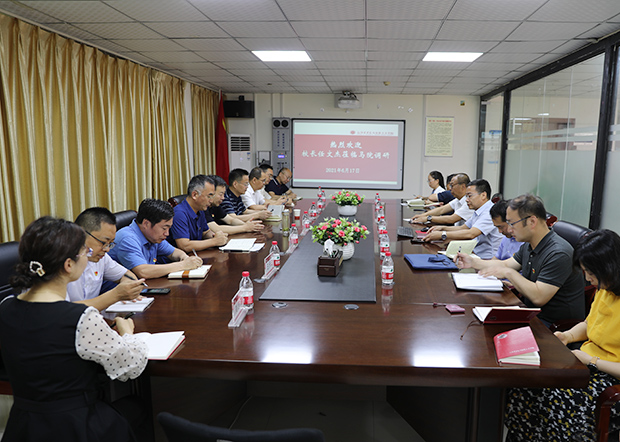 6月17日上午,校长任文杰、党委副书记陈清江到马克思主义学院现场调研。党委组织部、党委宣传部、第三巡查组、校长办公室、教务处、科技处等部门负责人陪同调研。马克思主义学院党政班子全体成员和教师代表参加了座谈。