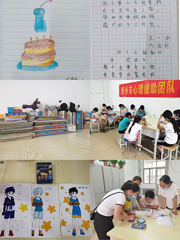 转移群众中有许多孩子,临时心理援助志愿团队发挥自身心理学、教育学、教育心理学等专业优势,丰富儿童在安置点的日常生活,包括室外团体活动、图书阅览、美术创作、指导作业等,减轻洪涝灾害对其心理发展的影响,增强拥抱生活的信心与希望。
