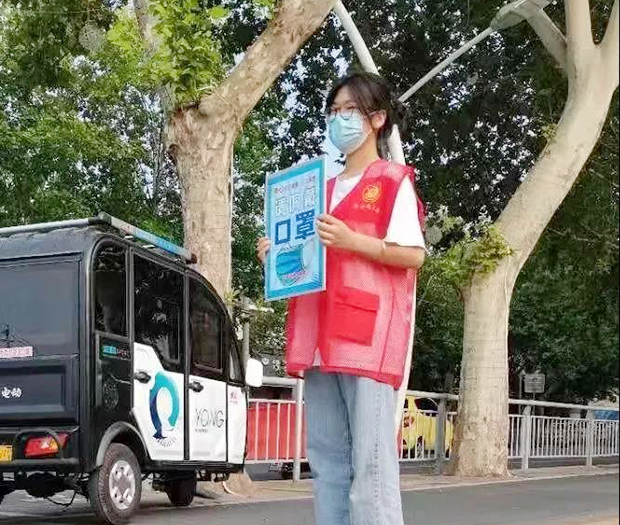 我的工作是到路口提醒行人规范佩戴口罩,虽然这份工作看起来很轻松,只需要举着牌子提醒没有规范佩戴口罩的行人,但是这份简单的工作依然让我收获满满。通过这次经历,我感受到了广大青年志愿者们的热心奉献、积极向上、诚信友善,有大局观和团队意识,同时志愿者工作并非自己想象中的那么轻松,因为肩上担的是沉重的疫情防控责任!