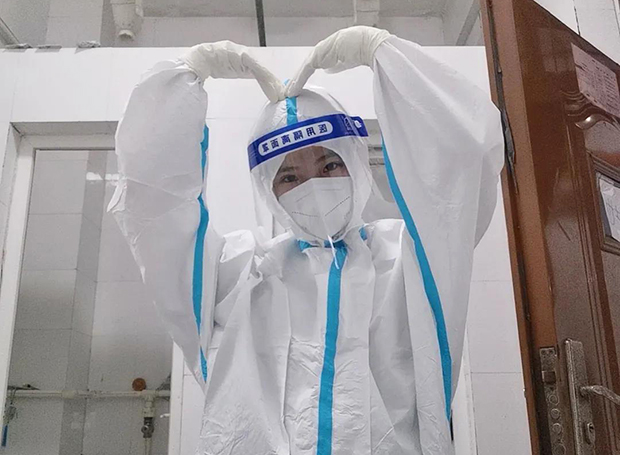 第一次穿上隔离服的那一刻,我心中有些忐忑。这样穿着隔离服的背影,曾多少次出现在我的视线中,曾多少次守护了我们的生命健康,一直以来这样的背影都是我心中的英雄。而今天,隔离服就穿在我身上,心中顿觉这背后是一份怎样沉甸甸的责任啊!怀揣着这样一份厚重的使命感,我们开始了一天的工作。我们所负责的这栋隔离楼里一共有7名志愿者和70个隔离人员,每名志愿者负责提供10个隔离人员的生活所需物资。从早上7点开始,一日三餐会有负责人把隔离餐送到志愿者门口,我们领取之后再将食物分发给每位隔离人员。除此之外,我们会帮助测量隔离人员体温、检测核酸、收取垃圾等。一般晚上10点汇报完毕后,一天的工作基本结束,但结束时间并不是固定的,即使是晚上,如果隔离人员出现了什么状况,我们要随时待命,随叫随到,确保防疫工作的顺利进行。