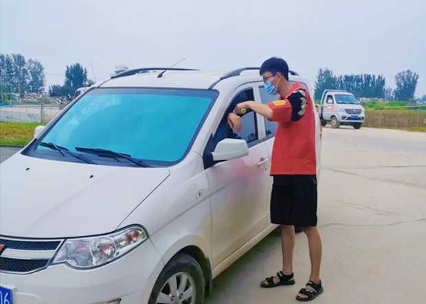 郑州疫情刚出现时,村里已经开始积极备战,负责人在村里的微信群招募志愿者,我第一时间就报了名。经过简单的培训,我便投入到了抗疫的工作岗位中。在村里设置的防疫卡点上,我负责督促来往村民配合防疫工作:发口罩,扫健康码、测体温,对过往机动车进行消杀。同时协助全民核酸检测工作顺利进行,维持秩序、帮助村民录入信息。