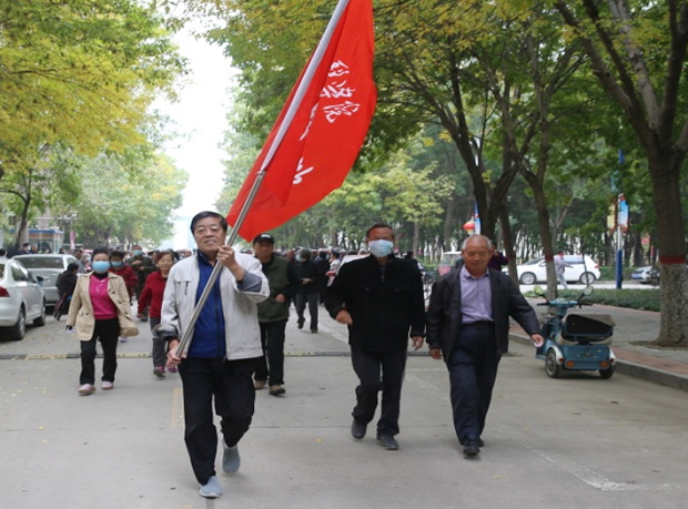 10月14日上午,老年徒步大赛在门球场前举行。老同志们精神抖擞、意气风发,在旗手带领下健步出发,他们脸庞绽放的笑容洋溢着幸福的晚年生活。