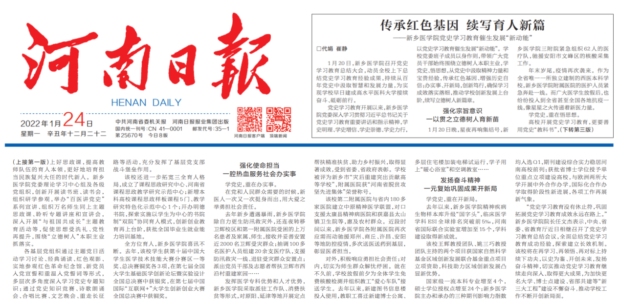 1月20日,华亿在线手机版(大中国区)召开党史学习教育总结大会,动员全校上下总结党史学习教育经验成果,持续从百年党史中汲取智慧和发展力量,为实现学校早日建成高水平医科大学接续奋斗、砥砺前行。