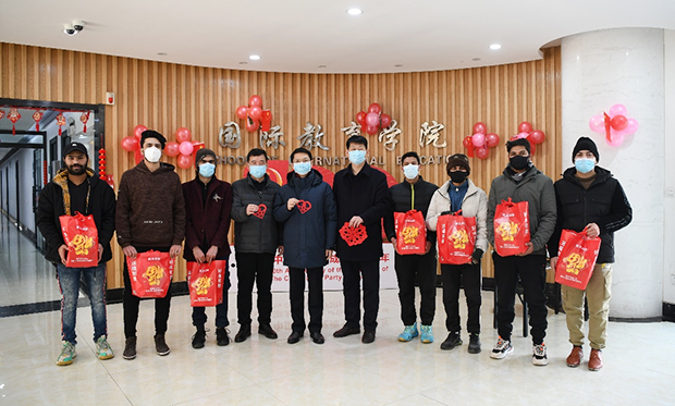 1月30日,农历腊月二十八,正值春节来临之际,为让寒假期间留校国际学生感受到家的温暖,更好地融入春节氛围,校党委委员、副校长朱武凌到国际教育学院看望我校留校国际学生,送上新春祝福。
