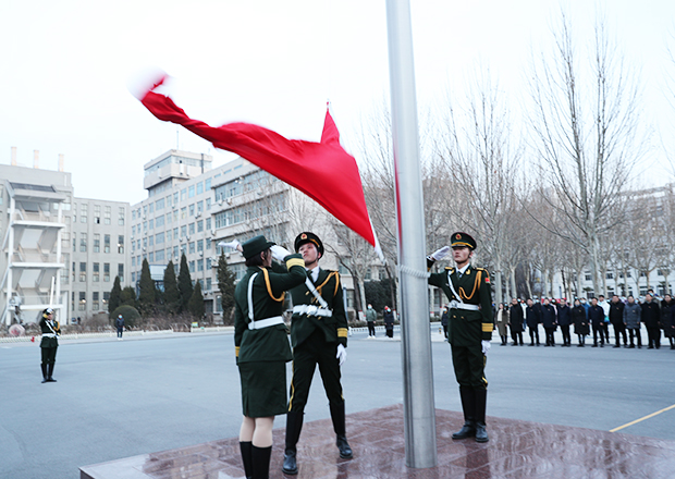 2月21日,新学期升国旗仪式在五环广场举行。校领导任文杰、郝红军、陈清江、王辉、雒保军、朱武凌、靳新峰、郭凯英、邵金远出席仪式。校学生工作领导小组成员单位负责人,各学院党委(党总支)书记、副书记、团委书记、辅导员及学生代表200余人参加升国旗仪式。