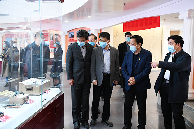 在第一附属医院,郝红军、邵金远认真察看了医院门诊、预检分诊处、核酸标本采集点、发热门诊等疫情防控重要位点,详细询问医院疫情防控措施制定和落实情况。在院史馆,郝红军一行对场馆外观修缮、馆藏内容扩增、周边美化绿化等工作提出具体要求。来到位于9号楼地下室的磁共振检查室,郝红军一行实地了解灾后恢复重建和大型设备更新配备情况,亲切慰问疫情防控一线医护人员。