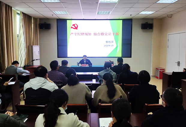 为进一步提升科级干部的整体素质、能力水平,切实加强干部的作风建设,推进医学检验学院高质量发展,不断适应学校建设高水平医科大学对干部能力和作风的要求,3月24至28日,医学检验学院举办科级干部提能力转作风专题培训班。按照课程安排,3月25日下午,校党委委员、纪委书记、监察专员郭凯英作党风党纪专题报告。医学检验学院领导班子、科级干部、教师代表参加会议。会议由医学检验学院党委负责人主持。