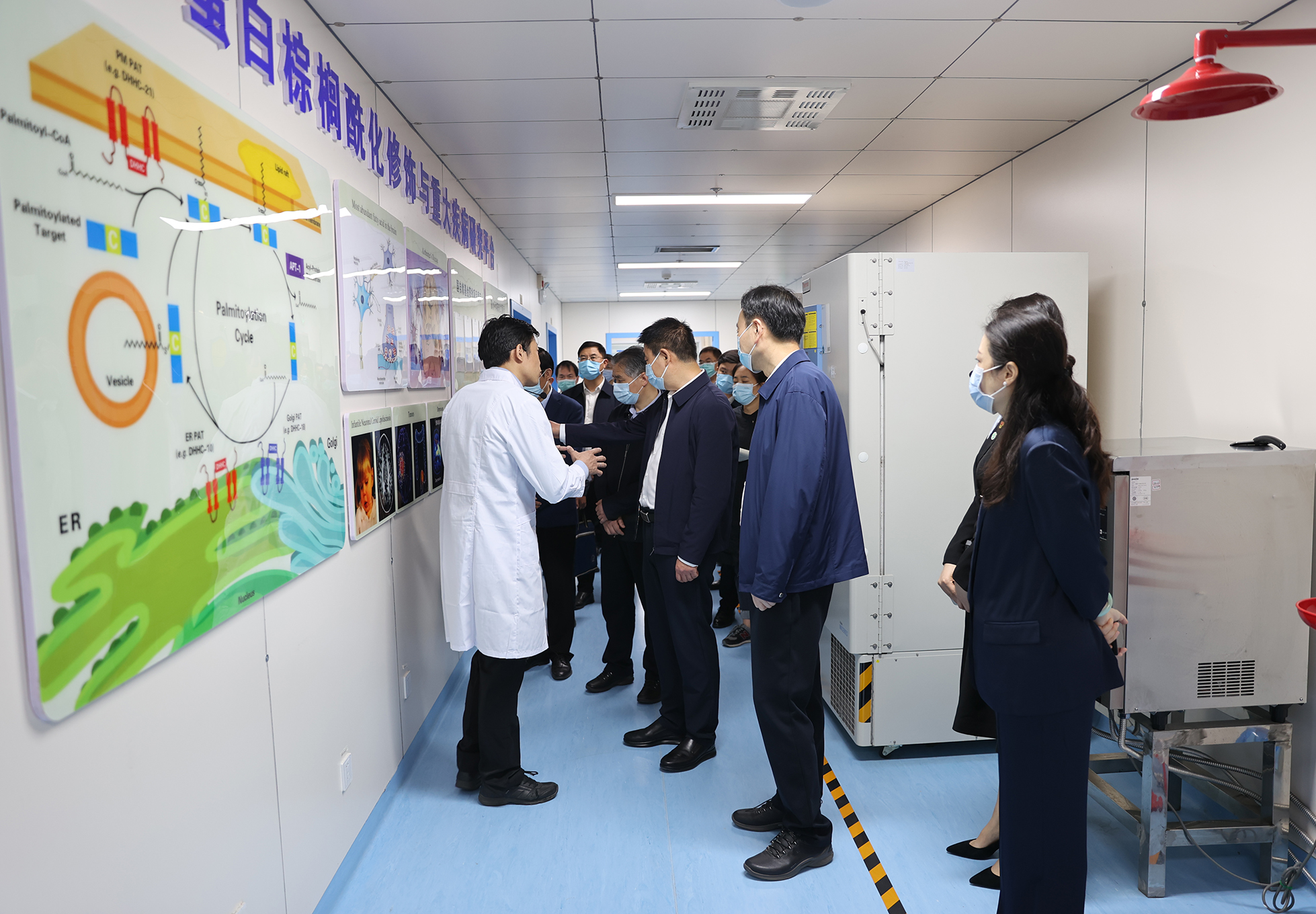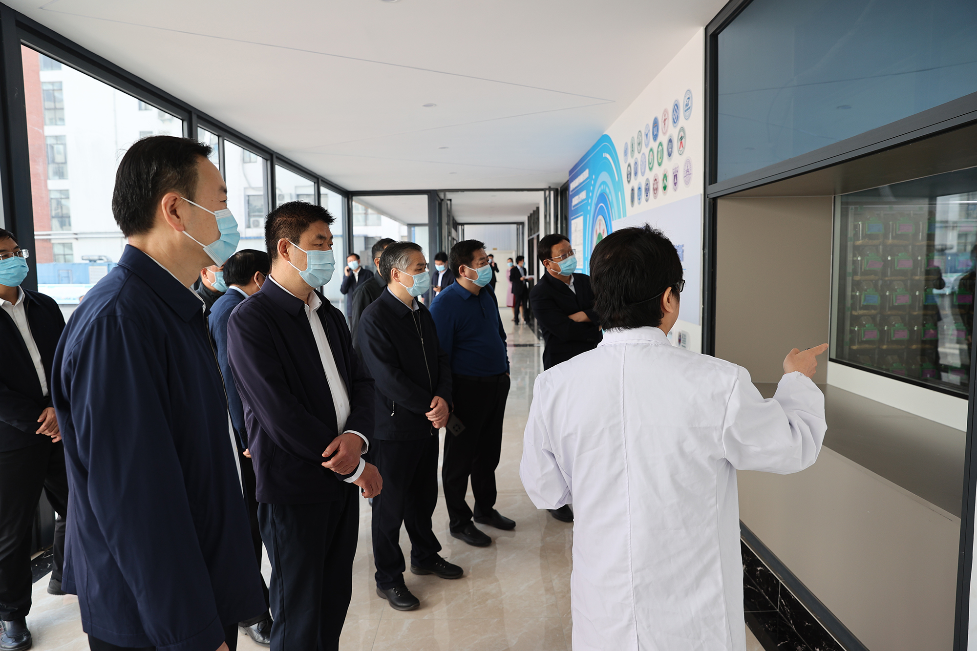 宋争辉一行先后来到河南省免疫与靶向药物重点实验室、临床技能培训中心、精神神经医学研究院进行实地考察,认真听取了相关负责人的汇报,详细了解了平台管理体制机制、发展定位、人才队伍、学生培养、项目开展、国际合作、建设成果等情况。宋争辉对我校大力推进人才强校、科研兴校战略表示充分肯定。他指出,各平台的教学科研人员无私奉献、勇于创新、勇攀高峰,为学校发展乃至健康中原建设贡献了力量。