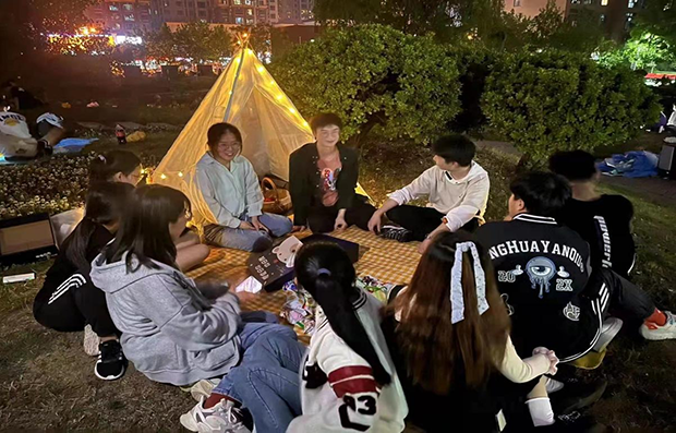 “谈”——“帷幔夜话”户外心理对谈。5月1日起,大学生心理健康教育指导中心在三个校区分别开展“帷幔夜话”户外心理对谈活动。通过游戏、对话、分享的形式,以神秘面具、吉他表演、破冰游戏、主题分享等活动为环节,让参与者放松心情,结识新友,体验友好人际关系。