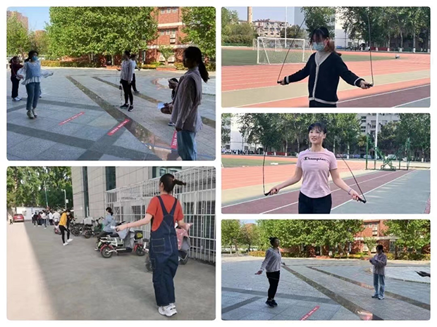 “跳”——让身体动起来!为进一步提升广大青年学生的锻炼意识,增强集体凝聚力,校团委、学生处、体育学院联合主办“跃动青春 绳彩飞扬”大学生跳绳大赛活动,该项活动将于“五一”后进行决赛,“五一”期间各学院纷纷组织学生在操场上训练备赛,操场上形成了“人手一绳、个个能跳”的生动景象。