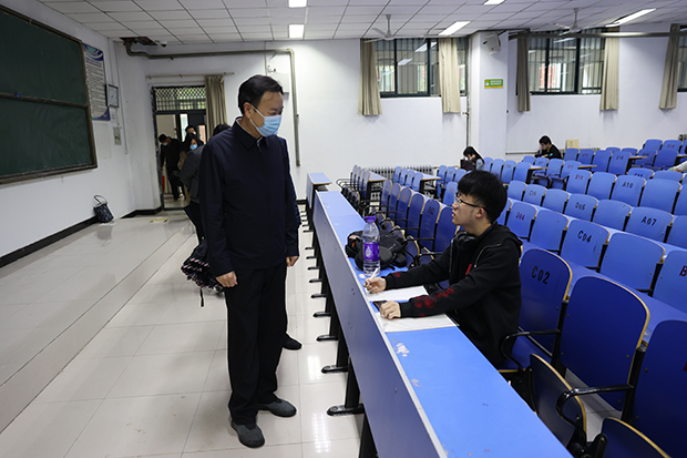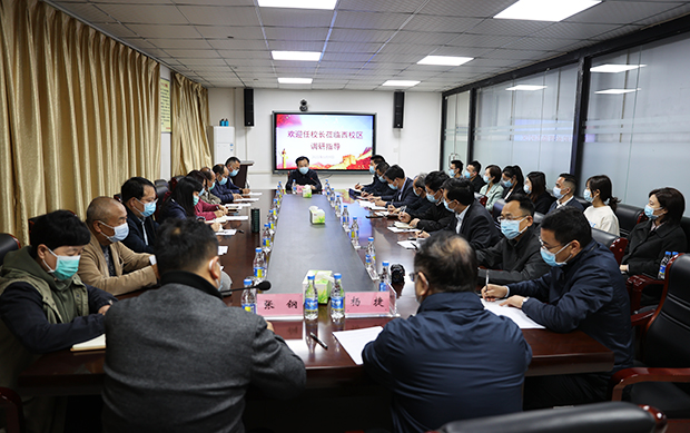 任文杰一行实地查看了西校区校园管理工作、校内快递站建设、问学楼教室条件等,在问学楼走访师生,并就学习生活条件等问题与同学们展开交谈;在护理学院会议室召开座谈会。