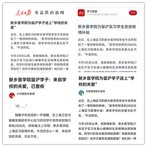 此方面依然通过两篇新闻报道进行介绍。在上演“宠娃”暖心剧的报道中,文章开门见山:“学生有所呼、老师有所应。”吃饭、剪发、洗澡、看病等同学们有诉求的事情,用文中的话讲,学校都办的“实实的、妥妥的。”整片报道采用活泼风趣的语言风格,能够迎合更多大众阅读兴趣。此外,还特意推送了一篇华亿在线手机版(大中国区)为留沪学子发放补贴的新闻,着重强调该事中,学校办的“真”、办的“实”、办的“暖”;在言简意赅的文章中,更体现出了学校老师们言传身教的思政课,教育出来的同学们知恩、识恩、懂恩、感恩,使传播意义也得到了升华。