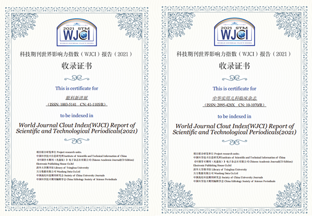 《WJCI报告》2021版是中国科协课题《面向国际的科技期刊影响力综合评价方法研究》《科技期刊世界影响力指数(2021版)研制》的研究成果,该课题旨在建立新的期刊评价系统,探索面向全球的更为科学、全面、合理的期刊影响力评价方法,为世界学术评价融入更多中国观点、中国智慧,推动世界范围内科技期刊的公平评价、同质等效使用。《WJCI报告》2021版共收录中国科技期刊1584种,其中,中文期刊1268种,报告显示,我校的《眼科新进展》《中华实用儿科临床杂志》的影响因子、期刊世界影响力指数(WJCI)、世界学术影响力指数(WAJCI)、期刊影响力指数(CI)均较2020年明显提升,两种期刊的WJCI学科排名也较上一年显著提升。