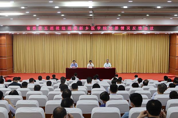 徐金柱代表省委第五巡视组反馈巡视意见,肯定学校近年来取得的成绩,指出巡视中发现的主要问题,提出具体整改意见和建议。