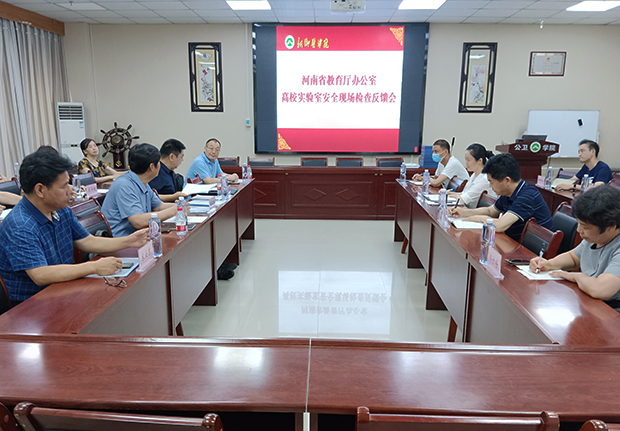 6月23日上午,河南省教育厅高校实验室安全检查组来校现场检查。现场汇报会在勤政楼六楼会议室召开。检查组组长中原工学院实验室管理处处长张鬲君,我校党委委员、副校长刘国庚出席。相关职能部门和学院科研单位负责人参加汇报会。