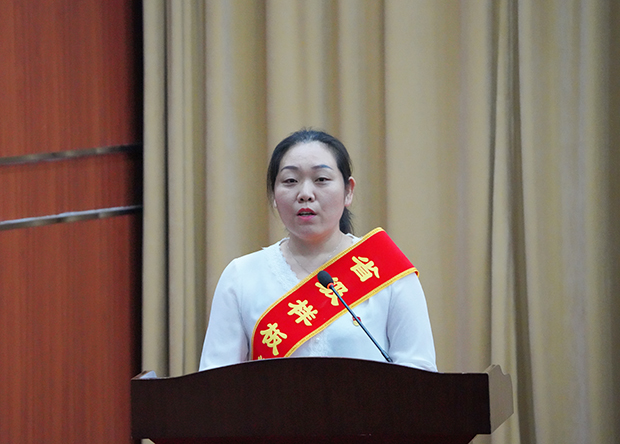 获表彰的省级样板党支部代表、基础医学院教师王国红进行典型发言,介绍了支部建设情况和工作心得,表示在今后的工作中将奋勇争先、毫不懈怠,把对党的无限忠诚和热爱落实到行动上,进一步发挥样板党支部的模范带头作用。医学人文学院青年教师饶丽丽作为新党员代表发言,表示将进一步坚定理想信念,践行初心使命、勇于担当作为,以优秀党员为榜样,立足本职岗位,以实际行动为学校发展作出应有贡献。