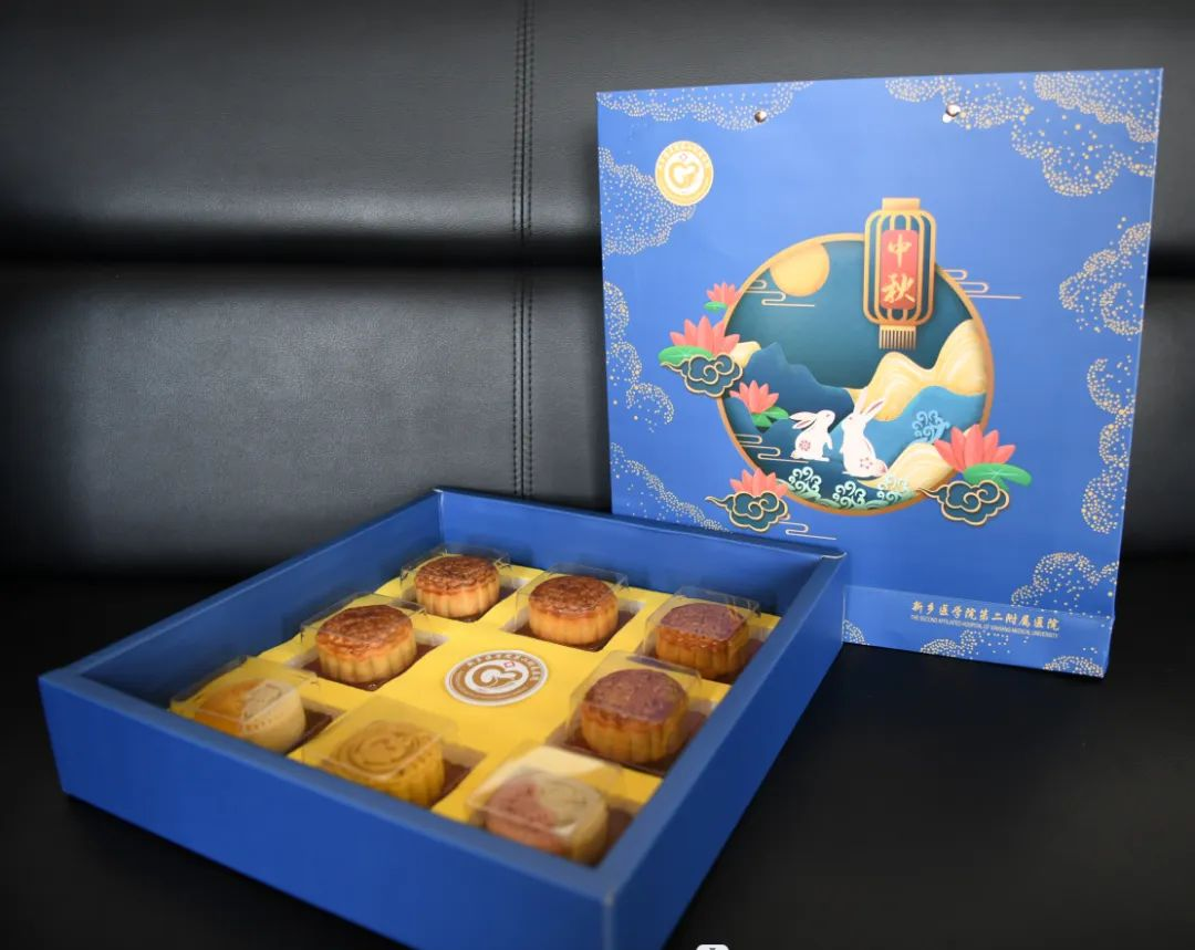 辉映日月七十一载,砥砺前行辉煌伟业。在中秋佳节来临之际,第二附属医院专属文创月饼也如期而至。医院将院训、院徽、医院精神等元素作为纹饰融入到月饼制作过程中,创造出设计独具匠心、口味多样丰富的文创月饼,纷纷成为职工微信朋友圈展现传统习俗的“靓丽风景”。