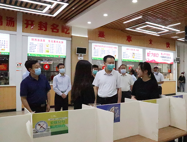 在溢香园餐厅,任文杰仔细查看餐厅环境卫生,了解各窗口菜品供应和价格情况,并向前来就餐的同学询征求进一步优化餐饮服务质量的意见和建议。在过街天桥施工现场,任文杰向工程负责人了解当前施工进度,对南北校区天桥周边环境设施建设提出具体意见,要求在确保建筑质量的前提下抓进度、提效率,将天桥建设成优化校园格局、服务师生通行、美化校园环境的优质工程。