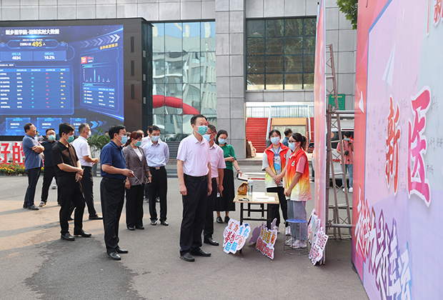 来到五环广场,任文杰一行认真查看人脸识别通道运行情况,充分肯定人脸识别系统、大屏幕迎新实施大数据展示系统、大数据服务平台迎新等体现出的“科技迎新”元素。在各学院新生报到处,任文杰向迎新工作人员了解目前报到人数、生源地、并与新生代表亲切交谈,询问他们假期生活、返校途中防护、来校感受等,他要求各学院和相关职能部门为新生提供优质便捷的迎新服务,提供舒适温馨的校园环境,确保安全来校、有序报到。