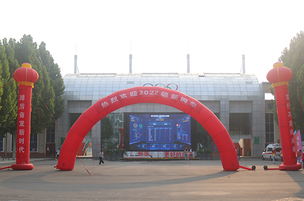 初秋的新医校园,迎新气氛浓郁,青春气息满满。校门处搭建多彩迎新门廊,音乐喷泉营造起喜庆氛围,各校区楼宇前设置的迎新背景墙传递出暖心问候,多处花艺景观造型将校园点缀得多彩靓丽。