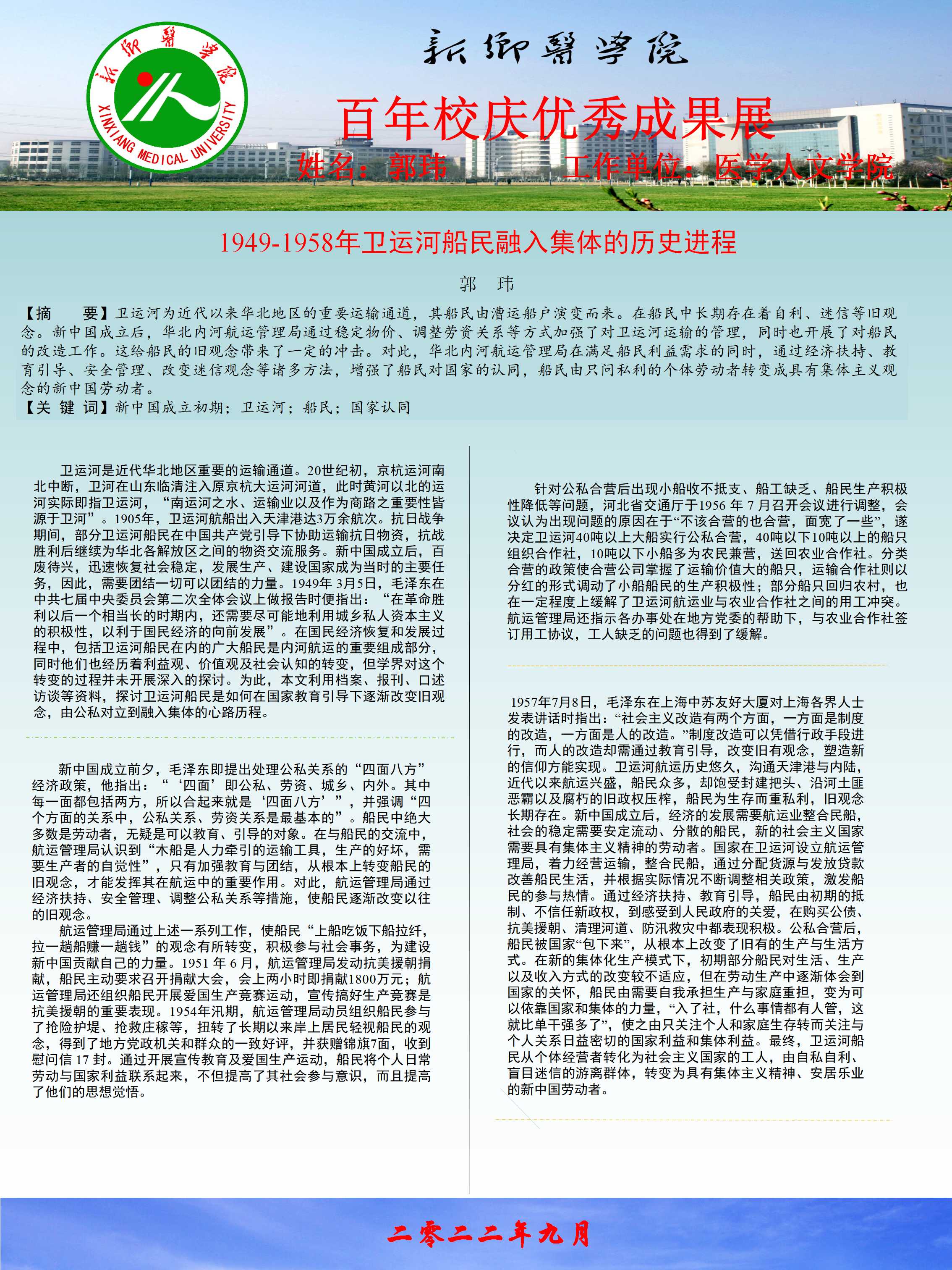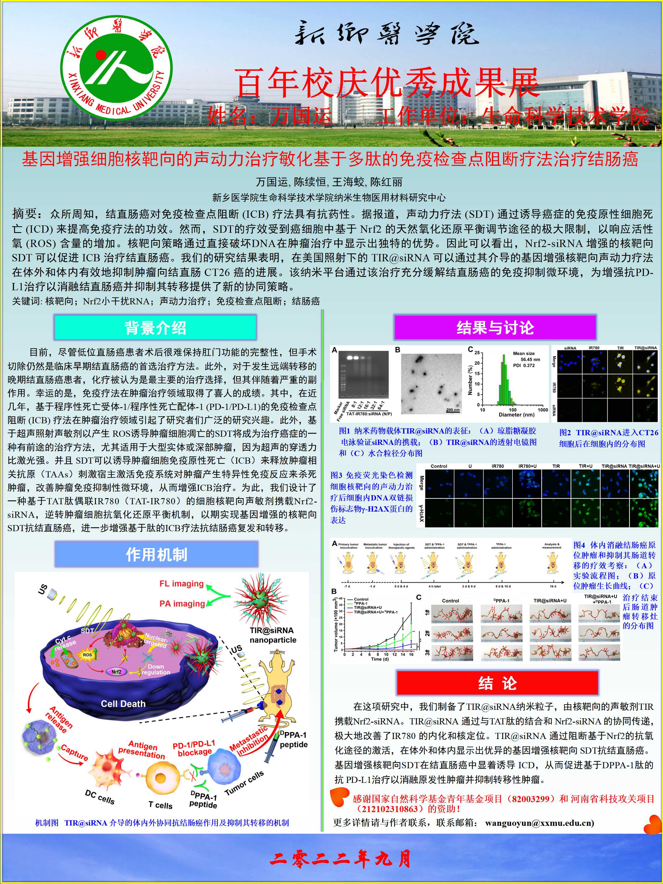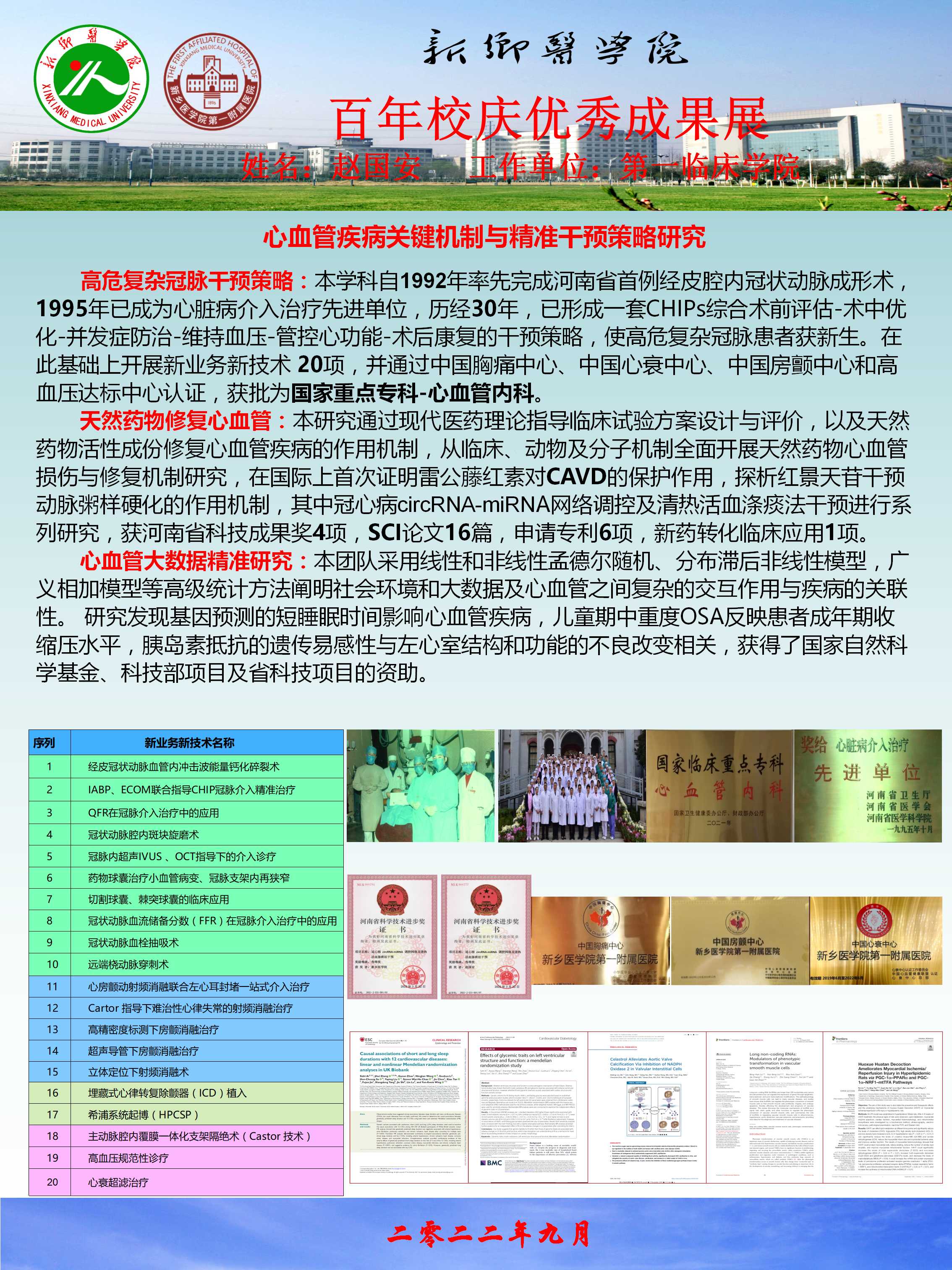 百年沐风雨,盛世书华章。我校在坚持人才强校和科技创新战略的带动下,科技创新领域成果频出,广大师生以良好的精神风貌和昂扬的斗志投身高水平科研和高水平医科大学建设。为进一步营造校庆氛围,促进科技创新与加强学术交流,为建校100周年校庆献礼,学校向校友及各学院开展了科技成果征集工作。本次成果展示将增强新医人的骄傲和自信,激励新医人更加积极热忱投身于科技创新和社会服务事业,助力学校更好更快地提升科技创新能力和社会服务水平,为国家科技进步和经济社会发展作出更加积极的贡献。