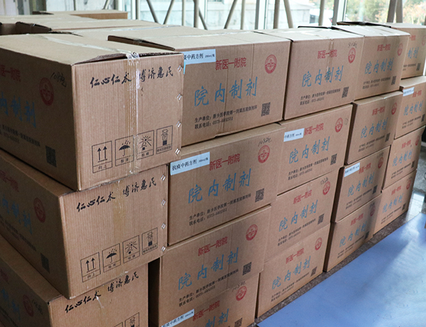 第一附属医院党委接到任务后高度重视、即刻行动。10月22日下午,医院组织中医学、药学、中药制剂学等专家进行研讨论证,结合当前疫情及气候环境等综合因素,在玉屏风散和神术散基础上,拟定“神屏散”方剂。确定方剂后,第一附属医院连夜组织药源,进行精心熬制并装袋打包,及时派专车送至新乡校区。后勤管理与服务中心等多个部门通力合作、迅速接应;由各学院党委、党总支分批次领取后及时将药剂发送至师生手中。