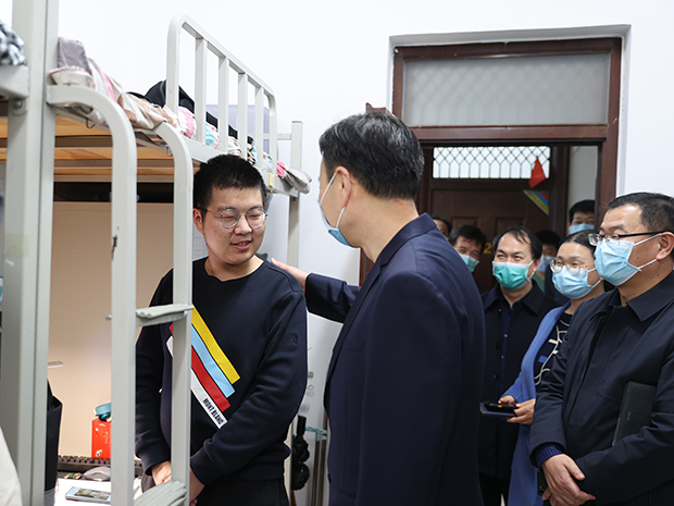 雒保军一行重点走访了学园三公寓、南校区体育场及周边区域,对学生公寓在疫情防控、卫生保洁、公寓安全、设施设备维修等方面进行检查指导。他深入学生宿舍与同学们交流,了解、关心学生的学习、生活、思想动态。雒保军指出,安全无小事,责任重于山,全校师生要提高政治站位,强化安全红线意识,深刻认识安全工作的重要性,营造安全和谐的学习生活环境。(供稿:杨楠)