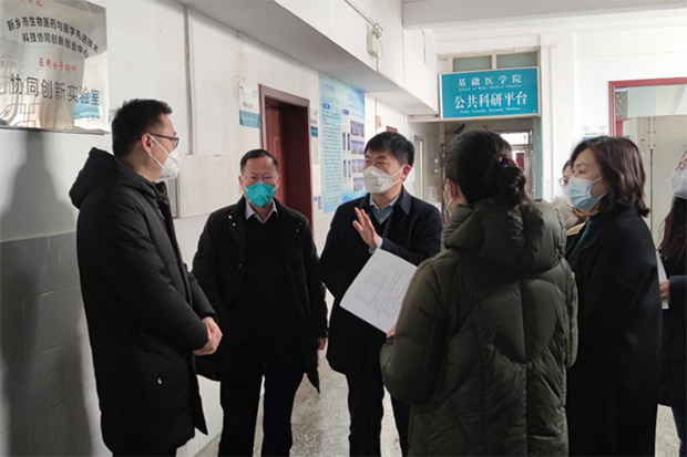 校党委委员、副校长刘国庚来到基础医学院、法医学院、药学院等相关单位实验室、危化品仓库、教学办公场所,对安全责任制度落实、楼宇日常用电和消防安全、危化品及特种设备的安全管理、运行保障安全等方面进行检查指导。