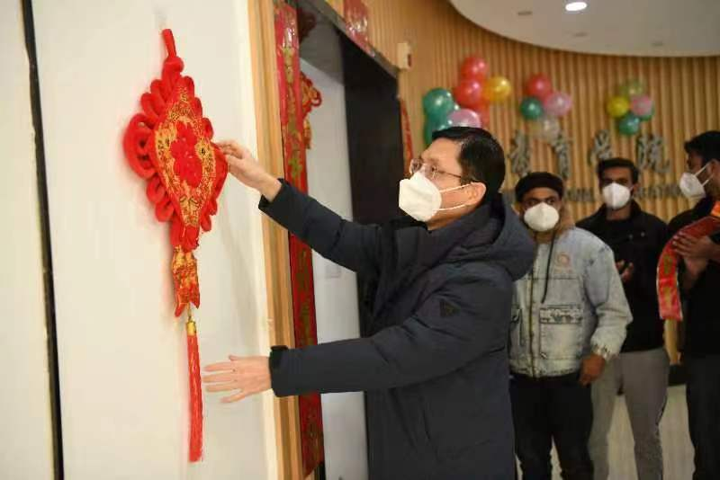 贴符贴喜添年味,红灯红结送温暖。1月19日,校党委委员、副校长朱武凌到国际教育学院看望留校的国际学生,向他们致以节日的慰问和新春的祝福。