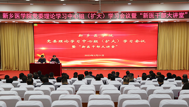 为深入学习宣传贯彻党的二十大精神,切实把广大党员干部和师生员工的思想行动统一到党的二十大精神上来,把智慧和力量凝聚到学校建设发展上来,2月21日上午,学校在第一报告厅举办党委理论学习中心组(扩大)学习会暨“新医干部大讲堂”。河南省委党校决策咨询部副主任涂小雨教授应邀到会作专题辅导报告,学校党委理论学习中心组全体成员、全体正处级干部、主持工作的副处级干部及马克思主义学院全体教师参加会议。会议由校党委书记、校长任文杰主持。