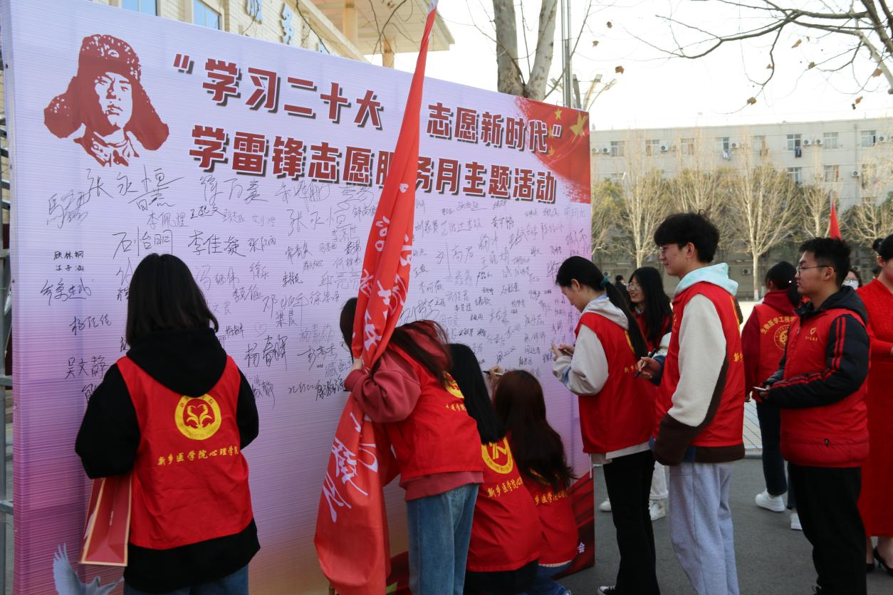 3月4日清风拂面,晴空万里,“学习二十大 志愿新时代”学雷锋志愿服务月正式启动,校级学生组织代表、各学院青年志愿者先锋队代表参加本次活动,并在签字墙上郑重签名。春光融融中,雷锋精神在每个志愿者心中种下一颗种子。