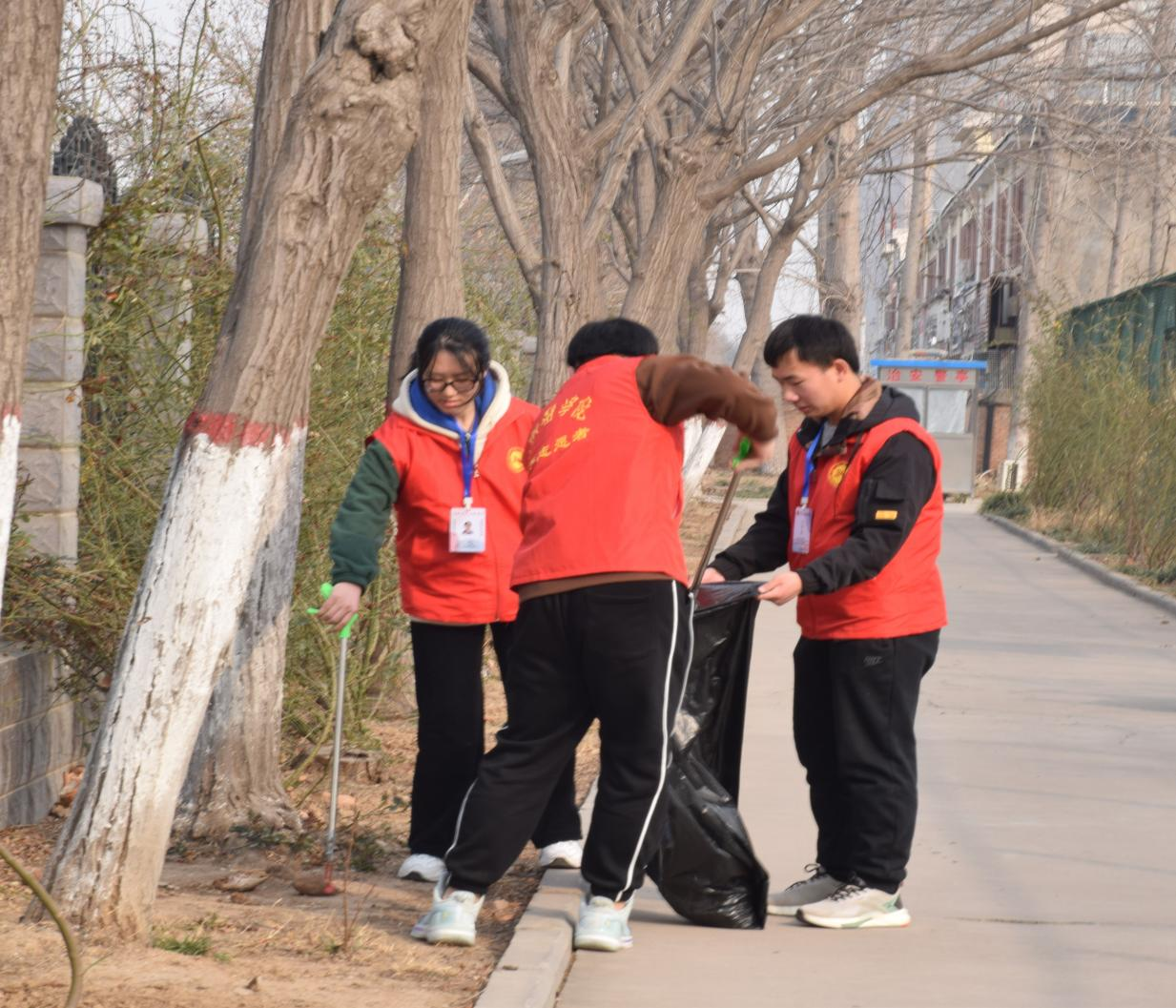 大学生志愿者开展美化校园志愿服务活动,用实际行动维护美丽文明的校园。