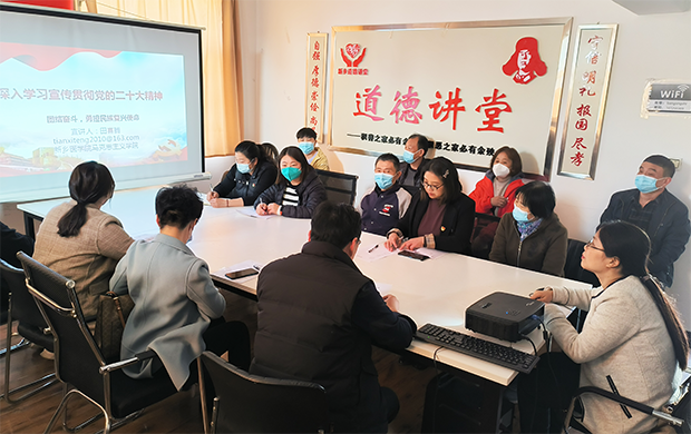 为学习宣传贯彻党的二十大精神,推动党的创新理论走深走实,学校党的二十大精神理论专家宣讲团成员、马克思主义学院田喜腾博士来到我校结对帮扶的东旭社区服务中心开展了“党的二十大精神”专题讲座。东旭社区全体党员参加。