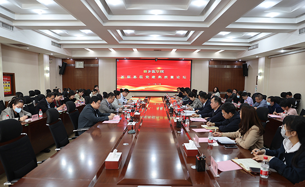 为深入学习贯彻党的二十大精神,落实学校党建暨全面从严治党工作会议精神,持续推进党的建设高质量见特色、树品牌、立典型,在全省党建工作“三级联创”中再创佳绩,吹响夺取教育部党建工作“双创”成果冲锋号,3月10日上午,学校首届基层党建高质量论坛在勤政楼六楼会议室召开,论坛主题是“凝心党建高质量聚力起跑新征程”。省委教育工委组织干部处(统战工作处)副处长李志广、主任科员樊艳霞,省基层党建工作评审专家、河南工业大学团委书记高泉、河南农业大学党委组织部干部科科长张世昌一行对我校公共卫生学院党委、医学技术学院党委进行实地调研,并出席本次论坛。全校各二级党组织书记、省级样板党支部书记、党委组织部全体成员参加论坛。