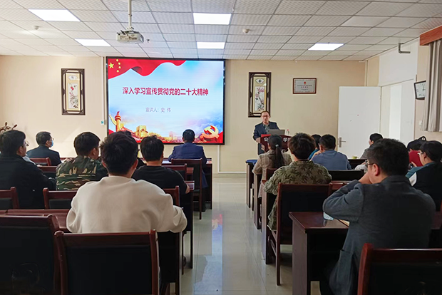 张会丽以“领会精神 勇担使命—深入学习宣传贯彻党的二十大精神”为题,紧紧围绕党的二十大主题、主要成果;党过去五年的工作成就和新时代十年的伟大变革;马克思主义中国化时代化、中国式现代化;全面建设社会主义现代化国家的目标任务;坚持党的全面领导和全面从严治党;应对风险挑战等七个方面内容,对党的二十大报告进行了全面系统的宣讲。宣讲会强调,我们要紧扣全面建设社会主义现代化国家目标任务,推动全党更加自觉深刻领悟“两个确立”的决定性意义,增强“四个意识”、坚定“四个自信”、做到“两个维护”,在思想上政治上行动上同党中央保持高度一致;全党要更加紧密地团结在以习近平同志为核心的党中央周围,牢记空谈误国、实干兴邦,坚定信心、同心同德,埋头苦干、奋勇前进,为全面建设社会主义现代化国家、全面推进中华民族伟大复兴而团结奋斗!