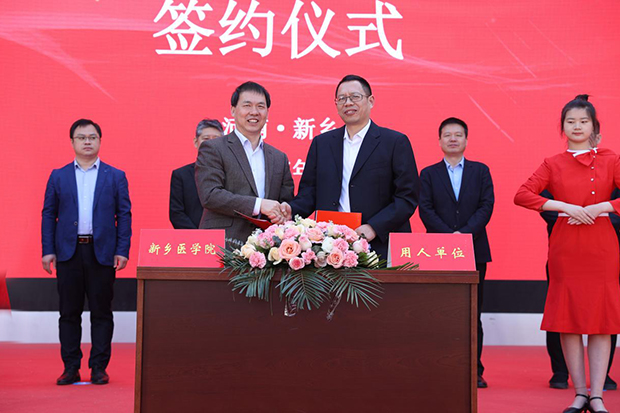 我校与达成合作意向的商丘市卫健委、舟山市卫健委、苏州市精神卫生专科联盟、禹州市人社局、南阳市第二人民医院、正大天晴药业集团股份有限公司等六家用人单位签署战略合作协议。